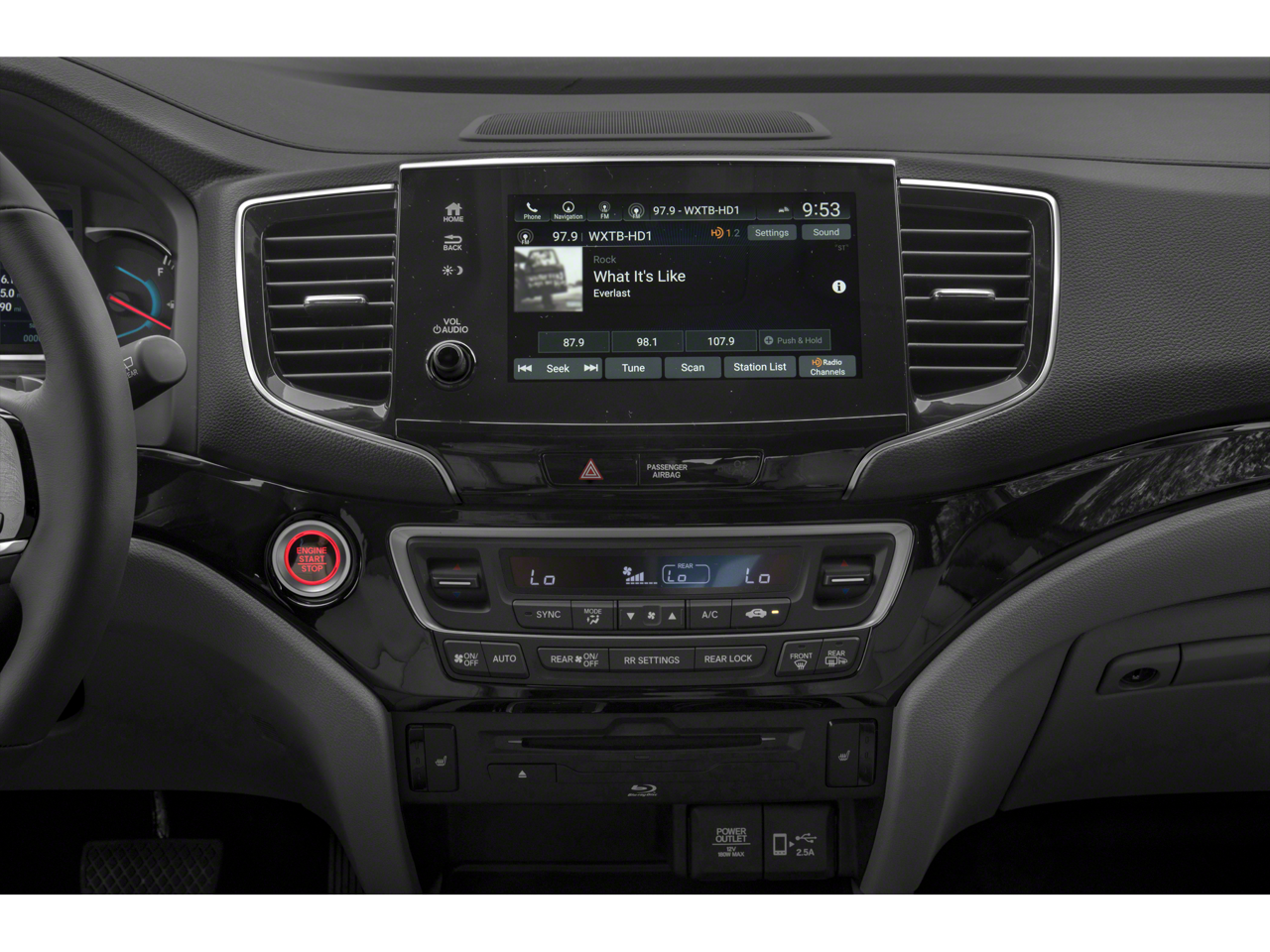 - Radio: 590-Watt Premium Audio System -inc: 10 speakers, subwoofer, 8" display audio w/high-resolution electrostatic touch-screen and customizable feature settings, 2.5-amp USB smartphone/audio interface front console (1 port), Bluetooth® HandsFreeLink, Bluetooth® streaming audio, MP3/auxiliary input jack, Radio Data System (RDS), Speed-Sensitive Volume Compensation (SVC), 2.5-amp USB charging port in center console (1 port) and 2nd row (2 ports), HondaLink, CabinControl remote compatibility, Apple CarPlay integration, Android Auto integration, SMS text message function (Compatible w/select phones w/Bluetooth®, Your wireless carrier's rate plans apply, State or local laws may limit use of texting feature, Only use texting feature when conditions allow you to do so safely.), SiriusXM radio (SiriusXM services require a subscription after any trial period, If you decide to continue your SiriusXM service at the end of your trial subscription, the plan you choose will automatically renew and bill at then-current rates until you call SiriusXM at 1-866-635-2349 to cancel, See our customer agreement for complete terms at www.siriusxm.com, Fees and programming subject to change, Available in the 48 contiguous United States and D.C, SiriusXM and all related marks and logos are trademarks of SiriusXM Radio Inc, HD Radio, CabinTalk in-car PA system through headphones, HondaLink subscription services (HondaLink subscription services come w/complimentary trials of security for 1 year and a remote/concierge trial for 3 months, Enrollment is required to access the remote/concierge trial and to access certain features of security, At the end of each trial period, purchase of a subscription is required to continue the respective services.), Wi-Fi hotspot capability (Requires AT&T data plan.) and multi-zone audio